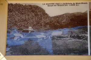 Cette scierie a fonctionné de la fin du XIXe siècle jusqu'en 1945. Elle occupait 40 personnes et traitait les pins de la montagne de Brouis. De nos jours, il reste des vestiges des infrastructures de l’ancienne scierie, composés des ruines d’un groupe de bâtiment en pierre, de turbines, de canaux, dont un ancien canal d’amené d’eau qui prenait origine dans l’Artuby en aval des gorges. Elle est située dans un cirque naturel entouré de reliefs vigoureux boisés.