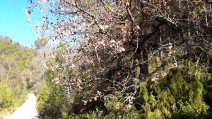 Le Chêne pubescent, ou Chêne blanc, très commun sur tout le pourtour méditerranéen, doit son nom au duvet qu’il porte sous les feuilles et sur les bourgeons. Il perd ses feuilles, au contraire du Chêne vert ou du Chêne kermès qui les gardent tout l’hiver. Par contre, les feuilles sèches persistent longtemps, accrochées aux branches, ce qui donne des paysages bruns jusqu’en avril quand les jeunes feuilles de l’année prennent la relève : on dit qu’il est marcescent.