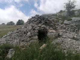 Appelée ailleurs "borie", on la désigne ici plus justement comme une cabane en pierre sèche. Construite sans mortier, uniquement avec des pierres empilées, elle servait autrefois d’abri aux bergers contre les intempéries, de remise pour le matériel ou d’abri pour les animaux. Son architecture particulière la rend facilement reconnaissable dans les paysages agricoles ou pastoraux. Lors de vos randonnées en zone d’estive, vous en croiserez certainement, isolées ou intégrées à des ensembles de murs en pierre sèche.