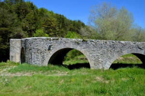 Il repose sur des pieux de bois enfoncés dans les alluvions recouverts de dalles à la façon romaine. Son intérêt tient dans sa forme qui s’incurve pour rejoindre la terre ferme et dans ses arches consolidées par des “becs” ronds ou triangulaires, aménagés pour permettre aux piétons de s’écarter du passage ils facilitent l’écoulement de la rivière. Un tel ouvrage s’explique parce qu’autrefois la route très fréquentée (Toulon-Entrevaux) passait dans le hameau et pour faire face aux crues de l’Artuby.