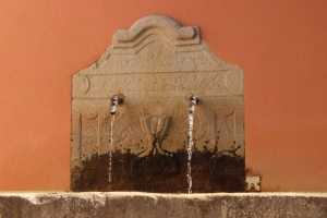 Elle est alimentée par la source de Verjon, située à plus de deux kilomètres et amenée au village par une canalisation en fonte. Jusqu’en 1951, année de la construction du réseau d’eau potable, c’est à cette fontaine, la seule du village, que les Compsois venaient chercher le précieux liquide. L’usage quotidien de cette fontaine en faisait un élément familier, entretenu avec soin. Sous les canons en cuivre on distingue la forme d’un vase ou d’un calice qui suggère le caractère sacré de l’eau.