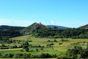 Point de vue sur la plaine et la chapelle Saint-André au sommet de la colline.