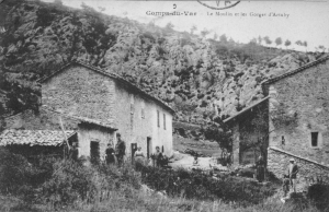 En contrebas du sentier nous apercevons l’ancien moulin de Comps Sur Artuby. Le moulin de Comps-sur-Artuby a été l’un des derniers moulins varois en activité. C’était un lieu où l’on aimait se retrouver. La force motrice de l’eau avec une roue à aube permettait de faire fonctionner le moulin. Ne se visite pas propriété privée.