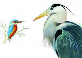 Entre les berges de la rivière et celles des lacs, le Héron cendré (Ardea cinerea) et le Martin-pêcheur (Alcedo atthis) ont chacun leur poste de chasse, tandis que le Milan noir (Milvus migrans) joue le rôle de nettoyeur en récupérant les cadavres de poissons et d’amphibiens. Les plans d’eau accueillent également plusieurs espèces d’oiseaux remarquables pour la région lors de leurs haltes migratoires : le Chevalier cul-blanc (Tringa ochropus), le Chevalier guignette (Actitis hypoleucos), le Canard souchet (Spatula clypeata), la Sarcelle d’été (Spatula querquedula) et, plus exceptionnellement, le Balbuzard pêcheur (Pandion haliaetus).