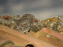 La Chevêche d’Athéna est dite bio-indicatrice de la qualité écologique des milieux agricoles, car très sensible à l’intensification des pratiques. Si les haies et les vieux arbres sont détruits ou si les gros insectes dont elle nourrit abondamment ses petits sont trop massivement éliminés par les traitements chimiques, elle disparaît. Avec un peu de chance vous l’apercevrez sur un toit de tuiles ou dans un arbre, vous fixant intensément de ses yeux jaunes d’or. Observez sans déranger !