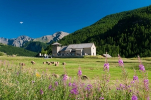 L’église est composée d’une nef unique et de 4 travées dotées d’une voute en tuf. Son clocher de 10 mètres de haut fût conçu comme une tour défensive. En 1575 il servit d’abri pendant les guerres de religions. Les protestants le transformèrent en prison et y enfermèrent et torturèrent des personnalités locales dites ‘fervents catholiques’. Entre 1628 et 1637, l’église fût reconstruite et une travée supplémentaire fût ajoutée pour accueillir le nombre croissant de catholiques dans le Queyras suite à la révocation de l’Edit de Nantes.