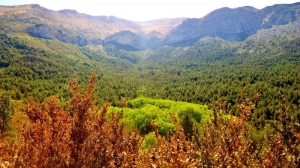 Admirer la forêt de peupliers tremble traversée auparavant, formant une tâche vert vif dans le paysage