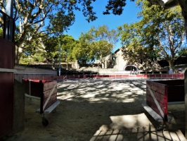 Les arènes de Chabaud se trouvent à l'emplacement d'un ancien moulin construit en 1787. Le bâtiment principal de ce moulin existe encore à l'intérieur des arènes. L'aqueduc, que l'on distingue à l'extérieur des arènes, était destiné à alimenter le moulin en eau. Vers 1898, ne rapportant plus de revenus suffisants à la commune, le moulin est vendu à un particulier. Auguste Chabaud, dernier propriétaire du moulin, transforme les infrastructures en arènes, inaugurées le 8 août 1926.