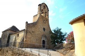 Cette église de style roman a été remaniée maintes fois et présente une façade avec un clocher mur aux trois cloches très original. On ne peut pas la rater avec la forme unique de son clocher « en chapeau de gendarme » et ses 3 cloches que l’on sonne toujours manuellement pour les grandes fêtes, ou pour sonner le glas.