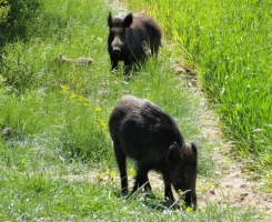 Il n'est pas rare de trouver des traces du passage du sanglier dans ces bois. Celles-ci peuvent-être des zones de terres retournées ou des empreintes laissées par la bête dans la boue ou encore des souilles, une petite mare de boue naturelle ou aménagée que les sangliers utilisent pour se débarrasser des parasites, avant d'utiliser un frottoir un peu rugueux, comme le tronc d'un arbre, pour gratter leur pelage. L’animal est un colosse, le mâle peut ainsi peser jusqu'à 160 kg.