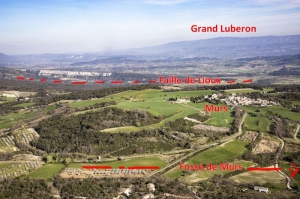 Le village de Murs domine vers le sud-ouest une dépression occupée par des terres cultivées. Ces terrains épousent parfaitement des affleurement de calcaires et d'argiles bordés par une imposante masse calcaire. Il y a environ 35 millions d'années, à l'Oligocène, des cassures profondes (failles) ont délimité une zone qui s'est enfoncée progressivement : un fossé d'effondrement. C'est l'histoire du fossé de Murs, qui est aussi celui de Sénanque...