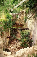 Troisième moulin des gorges sur le territoire de Murs, il repose sur le même principe constructif que les deux premiers (une chambre des eaux sur laquelle est disposée la salle des meules puis l’habitation). La date de 1753 gravée sur une pierre correspond plutôt à un remaniement qu’à la construction initiale. On distingue ici facilement le canon en pierre de taille qui permettait de créer une chute d’eau donc une force motrice entre la resclause en amont et la salle des eaux en contrebas.