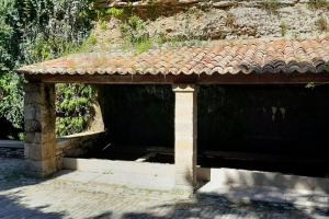 Au pied du chemin caladé, se cache une des plus anciennes fontaines de Gordes (il en est fait mention au milieu du XVIe s.). Cet ensemble fontaine-lavoir a la particularité d’être adossé à la falaise. L’eau ruisselle de la roche et trois canons alimentent la fontaine qui surverse elle-même dans le lavoir doté de ses deux bassins de rinçage et de lavage. Aujourd’hui inusité, les fontaines-lavoirs étaient jadis un point central de la vie au village, un lieu de socialisation essentiel.
