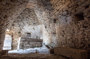 Les bories sont de petits édifices en pierre sèche, construits sans liant ni mortier. Ces abris temporaires pour les hommes, les outils, les récoltes et les bêtes, étaient érigés par les paysans avec les pierres des champs. De plan rond, carré ou rectangulaire, leur voûte est en encorbellement. Celles encore en place n’auraient pas plus de 3 ou 4 siècles, les plus anciennes se seraient elles écroulées suite à leur abandon. Ici, sur le Village des bories à Gordes (visite payante), trente cabanons de pierre sèche ont été ressuscités et restaurés par dix années de travail.