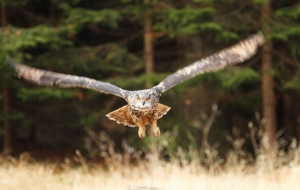 Les combes et les falaises des Monts-de-Vaucluse abritent des rapaces majestueux. Vous entrez ici sur le territoire du Grand-duc d'Europe (Bubo bubo), le plus grand oiseau de proie nocturne (1,80 m d'envergure !). Il construit son aire dans les falaises escarpées, où il se reproduit et élève ses jeunes de janvier à juin. Il chasse en forêt, mais préfère les espaces découverts, et principalement au début de la nuit et à l'aube. Ses déchets de proies non digérés sont compressés en "pelotes", cylindres irréguliers ou de forme conique. Espèce protégée, comme pour les autres grands rapaces du Luberon, son milieu de vie fait l'objet d'un arrêté préfectoral de protection de biotope.