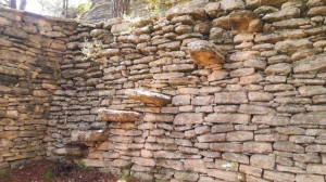 De nombreux escaliers de types différents permettaient un accès à toutes les terrasses. Le modèle le plus spectaculaire, l’escalier dit « volant », est constitué de longues pierres dépassant du mur. Un peu acrobatique, il est aussi irréparable lorsqu’une marche se casse au ras, ce qui est relativement fréquent.