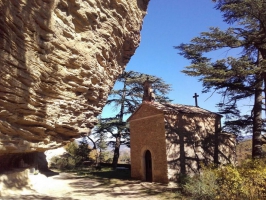 Datant du XIe s. et construite sous un immense abri sous roche, le site a pris de l'ampleur au XVIIe s. lorsqu'en 1661, un habitant de Goult, Antoine de Nantes dit Jalleton, reçu en apparition des lumières entourant un enfant, et fut, à la suite de cet évènement, guéri d'une maladie intestinale. Un sanctuaire fut édifié deux ans plus tard en contrebas, et les religieux et fidèles firent de Lumières un lieu de pélerinage à la vierge Marie. Encore de nos jour, une Vierge Noire est montée en procession, tous les 15 août, à la chapelle Saint-Michel.