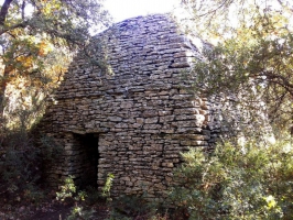 Abris rudimentaires et temporaires, à vocation agricole ou pastorale, les cabanes en pierre sèche du Luberon permettaient au paysan, ou au berger avec son troupeau, de séjourner quelque temps loin du village. Le vocable "borie" du latin ''boria'' (grange) est apparu au début du XXe s. Il ne correspond à aucune réalité locale ici, où on a de tout temps appelé ces petits édifices architecturaux "cabanes" ou "cabanons". Ici, resiste encore au temps une belle cabane rectangulaire.