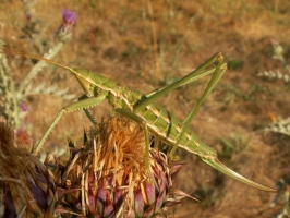 La magicienne dentelée Saga pedo est sans doute le plus grand insecte de France, avec une longueur complète du corps de 9 à 11 cm (l’oviscapte, c’est-à-dire l’organe permettant de pondre, fait à lui seul 4 cm). Cette sauterelle extraordinaire n’a pas d’ailes et, fait rarissime chez les orthoptères et unique en France, les mâles de magicienne dentelée n’existent pas. Les femelles se reproduisent par parthénogénèse (reproduction asexuée). Les descendants de chaque femelle sont donc des clones.