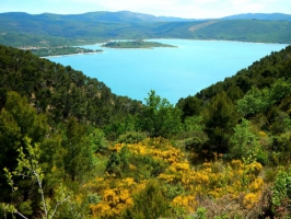 L’île de Costebelle ou la colline dominant le village englouti dans le lac de Sainte-Croix est visible depuis le sentier cette île est le seul sommet resté visible après la mise en eau du lac de Sainte Croix en 1974.