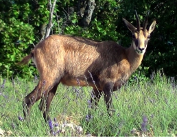 Le Chamois est un ongulé ruminant de la sous-famille des Antilopes, les Rupricaprinae. Il est strictement diurne et vit entre 300 et 3000 mètres d'altitude dans les Alpes et Pyrénées. Il aurait pour patrie d'origine la Grèce septentrionale ou la Thrace. Il n’est pas rare d’en voir au milieu des champs de lavande en bordure du plateau. (voir photo)