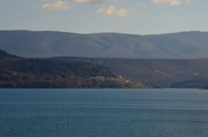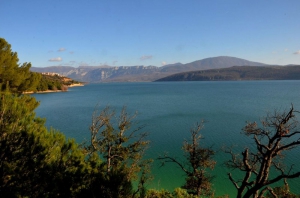 Depuis ce point de vue vous pouvez apercevoir les 4 villages séparés par les eaux du lac. A droite Sainte Croix du Verdon, au milieu au bord du lac le village des Salles sur Verdon, le seul qui fût détruit et reconstruit en 1974 au-dessus on aperçoit le village d’Aiguines sentinelle du Verdon à l'entrée des gorges et enfin sur la gauche Bauduen le port du haut Var.