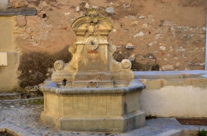 En 1877 les eaux du Verdon furent captées et canalisées au niveau de Quinson pour alimenter la région d’Aix-en-Provence. Le village fut dédommagé et obtint une adduction d’eau directe. On décida alors d’améliorer le confort des habitants par des fontaines régulièrement réparties et d’embellir ainsi la ville. Au centre, deux fontaines adossées adoptent le même modèle. Cinq autres fontaines, toutes différentes, dont deux monumentales, sont placées régulièrement tout autour de l’enceinte médiévale.
