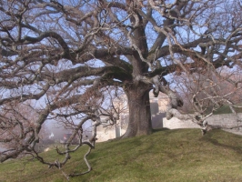 Très beau chêne de 24 m de haut, au fût droit et à la couronne étalée, bien dégagé sur son promontoire. Avec ses 4,35 m de circonférence, il marque le paysage. Il fait partie des trois gros chênes situés autour du village de Murs, parmi les plus remarquables du Luberon.