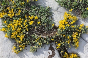 Mais pourquoi, soudainement, ce paysage désertique et rocheux ? La réponse est microscopique : c'est une bactérie du genre Microcodium qui mange littéralement le calcaire, d'où par endroits la présence de placages sableux. Ce milieu très pauvre, ouvert et soumis aux quatre vents, est favorable à une flore exceptionnelle : Genêt de Villars (Genista pulchella subsp. villarsii), Scabieuse à feuilles de Graminées (Lomelosia graminifolia), Minuartie à feuilles capillaires (Minuartia capillacea)...