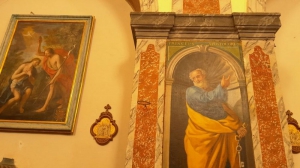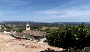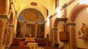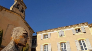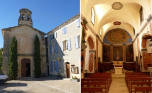 Cachée au bout de la rue à proximité, se dresse l'église Saint Jean-Baptiste. Edifiée entre 1766 et 1770 au cœur du village de Joucas, cette église reprend les codes de l’architecture classique du XVIIIe s. tels que sa façade d’entrée ordonnancée (symétrique), ses chaînes d’angles à bossage. À l’intérieur, la nef est couverte d’une voûte d’arête sur 4 travées ; elle se termine par une abside en cul-de-four (voûte qui correspond à la moitié d’une coupole) dont le thème peint représente un ciel étoilé entourant le Sacré-Cœur en gloire.