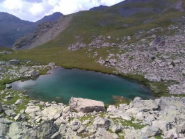 Un cairn indique le départ de la descente assez raide qui mène au lac. Vous remarquerez, au bord de ce dernier, les ruines d’une chapelle, but du pèlerinage de la Saint Laurent, le 10 août. De belles vues sur la chaîne alpine. Un itinéraire peu fréquenté, donc avec une possibilité accrue d’observer la faune : marmottes, chamois, rapaces…