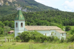 Église du (XIIIe et XVIIe siècle), peinte en vert castellane (tiré d'une argile locale). Également placée sous le patronage de Sainte Anne.