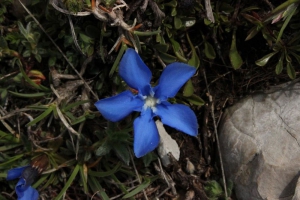 De petits points bleus ponctuent la prairie, voici la gentiane printanière ou gentiane dentée ou bouquet de Notre-Dame. Haute de 3 à 15 cm, il faut s'approcher pour admirer son bleu profond.