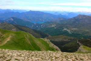Depuis le sommet une vue sur le lac de Castillon et le village de Demandolx au loin, la crête du Cremon sur la droite
