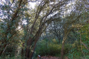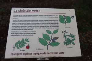 Le chêne vert, résistant à la sécheresse et friand des versants arides et calcaires, est très présent dans le bassin méditerranéen. Très répandue dans le Luberon les anciennes chênaies vertes sont toutefois rares en raison de l'activité humaine. La chênaie verte représente le stade final de l'évolution de la garrigue quand elle n'est pas exploitée par l'humain.
