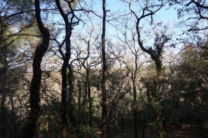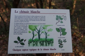 La chênaie blanche est composée majoritairement de chênes pubescents qui apprécient les sols calcaires mais sont moins résistants à la sécheresse que les chênes verts. Ils se plaisent dans les anciennes terrasses de cultures. De nombreux arbustes poussent en sous-bois. La chênaie blanche est surtout exploitée pour son bois de chauffage.