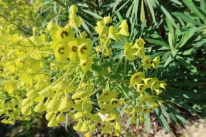 L’euphorbe characias (Euphorbia characias) est une plante vivace, haute d'à peu près un mètre, qui fleurit de mars à juin. Ses fleurs particulières vont du vert jaunâtre au brun noirâtre. Cette plante, lorsqu'on la coupe, secrète un genre de latex, voisin du caoutchouc, qui peut provoquer des irritations.