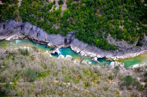 Vue sur le sentier Blanc-Martel, avec les eaux cristallines du Verdon