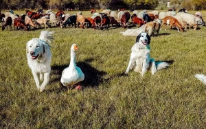 Pour éviter les désagréments en cas de rencontre avec les nombreux chiens de troupeau (7 chiens) et de l’oie au passage devant la bergerie n’hésitez pas à téléphoner aux éleveurs (Marion au 0626405334) Sinon laissez les chiens vous reniflez, puis reprenez la marche, ils vont s’en aller tranquillement. Vous allez aussi croisés un troupeau de chèvres, des moutons, des poules aussi, des vaches… une vrai ferme en somme !