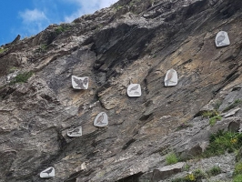 La paroi rocheuse a permis la mise en place d’une dizaine de laves émaillées représentant les oiseaux observés sur le canal.