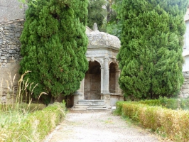 Dans ce petit parc du vallon de la Fontaine, se trouve le pavillon de la Reine Jeanne. Ce monument historique du XIVe s. représente un temple de style Renaissance. Commandé par Jeanne de Quiqueran, baronne des Baux et épouse d’Honoré des Martins, baron des Baux de 1568 à 1581, il a été érigé dans l’angle d’un petit jardin à la française, appartenant à leur famille. L’écrivain Frédéric Mistral a fait construire la réplique de ce pavillon pour orner son tombeau au cimetière de Maillane.