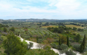 Détourner le regard du rocher des Baux permet d’admirer le panorama. Du chemin, il est possible de contempler la mosaïque de paysages que le château des Baux surplombe depuis des siècles. Cette mosaïque est le résultat de l'homme, qui l'a façonnée à sa façon, par ses activités multiples. Haies, oliveraies structurent la plaine qui est encerclée par Baumayrane au nord et les rochers d'Entreconque au sud. Pour tout savoir de la culture des arbres emblématiques des Alpilles, tels que les oliviers et les amandiers, découvrez le chemin paysan en contrebas (renseignements auprès de l'Office de Tourisme des Baux-de-Provence).