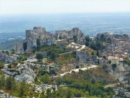 Ici se trouve un superbe panorama à 360°C, qui offre une vue imprenable sur les Baux-de-Provence et leur château. Construit au XIe s. sous l'ordre des seigneurs des Baux, ce château fut par la suite détruit à plusieurs reprises lors des conflits touchant la Provence. La spécificité semi-troglodyte de cette forteresse fait qu'on retrouve encore aujourd'hui une partie du donjon relativement bien conservé et qui se voit très bien de loin, depuis les plaines avoisinantes.