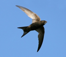 A l’origine espèce des falaises, le Martinet s’est accommodé de nos édifices où le couple, fidèle d’année en année, rénove ou construit son nid au printemps. Espèce grégaire aux mœurs exclusivement aériennes, le Martinet déguste en vol les insectes, s’accouple en vol, dort en vol, attrape en vol les matériaux pour son nid… Son plumage presque complètement noir, à part une trace blanchâtre et peu visible au menton, et ses ailes en forme de faux permettent de le distinguer des hirondelles.