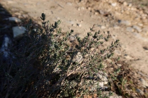 Plante aromatique très appréciée en cuisine, le thym (Thymus vulgaris) apprécie les terrains les secs et ensoleillés. Son intense floraison rose-blanc s’effectue au mois de mai. Sous-arbrisseau vivace et dense, Il fut très tôt apprécié tant comme aromate que comme herbe médicinale. Ses fonctions ont été diverses : brûlé comme encens lors de rituels chez les Latins, utilisé pour parfumer le bain des Grecs Anciens ou encore symbole de courage au Moyen-Âge. C’est aussi un puissant antiseptique.