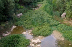 Les espèces exotiques introduites dans un écosystème, parfois involontairement, représentent la 3ème cause de perte de la biodiversité. Le Calavon est ici concerné par la Jussie, plante aquatique d’Amérique du sud. Elle s’est répandue en Europe au XIXe s. via les bassins d’agrément où elle était utilisée comme espèce ornementale pour sa floraison jaune. Très envahissante, elle entrave la circulation de la faune aquatique, élimine les herbiers, et peut provoquer une asphyxie du milieu.