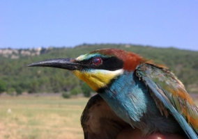 Espèce migratrice d’Afrique, le Guêpier d’Europe (Merops apiaster) se reproduit dans le Luberon de mai à septembre. Oiseaux très colorés, il chasse à l’affut en se posant souvent en groupe sur les lignes électriques. Il capture des insectes dont une majorité d’Hyménoptères (abeilles, guêpes) mais aussi libellules, cigales, papillons. Un individu peut consommer jusqu'à 250 abeilles par jour ! Le Guêpier niche ici en colonie dans les berges du Calavon où il trouve les conditions propices pour creuser un terrier.