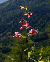 Ce grand lis de 50 cm à 1 m de hauteur est emblématique des Alpes. Ses fleurs roses et mouchetées de pourpre sont plutôt grandes, penchées vers le sol et ses six pétales se recourbent à maturité vers le haut, laissant apparaitre six longues étamines orangés. Globalement assez rare, on compte plusieurs stations dans le vallon du Couleau, dans des milieux d'alpages ou de broussailles en sous-bois, généralement en fleurs en fin de printemps ou début d’été.