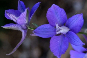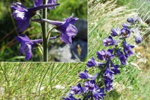 La Dauphinelle fendue (Delphinium fissum) est une belle plante d'origine montagnarde ne se rencontre que très rarement dans le sud des Alpes. Elle trouve ici une des quatre stations seulement qui lui sont favorables dans le Luberon. Ses grappes de belles fleurs bleu foncé portent des éperons dressés et n'apparaissent qu'au mois de juillet. Cette plante dispose d'un redoutable produit toxique (la delphinine) comme la plupart des espèces qui appartiennent à la famille des Renonculacées dont elle fait partie.