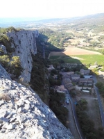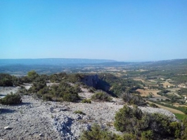 Ici de dévoile un magnifique et grandiose belvédère au sud-ouest sur le massif du Petit Luberon et son vaste plateau sommital. Plein ouest, le village de Gordes se repère bien, édifié et imbriqué sur le rebord du plateau de molasse, la "Pierre du Midi". Plus au sud, une partie du massif des ocres se découvre, avec ses sables rouges et jaunes. Ces sables d'altération sont l’indice d'une provence tropicale il y a 100 millions d'années.